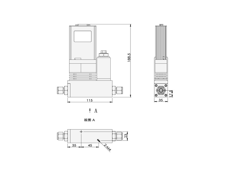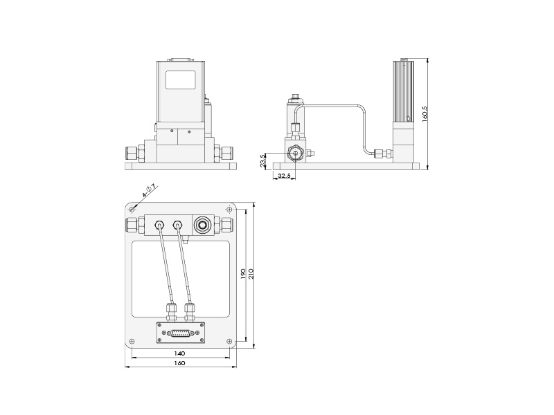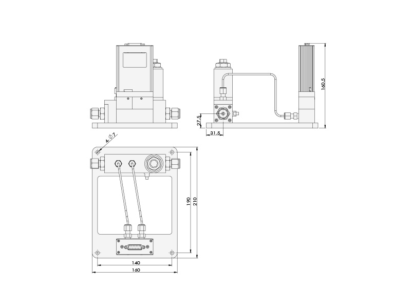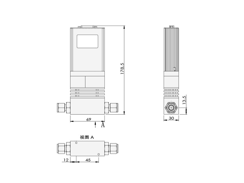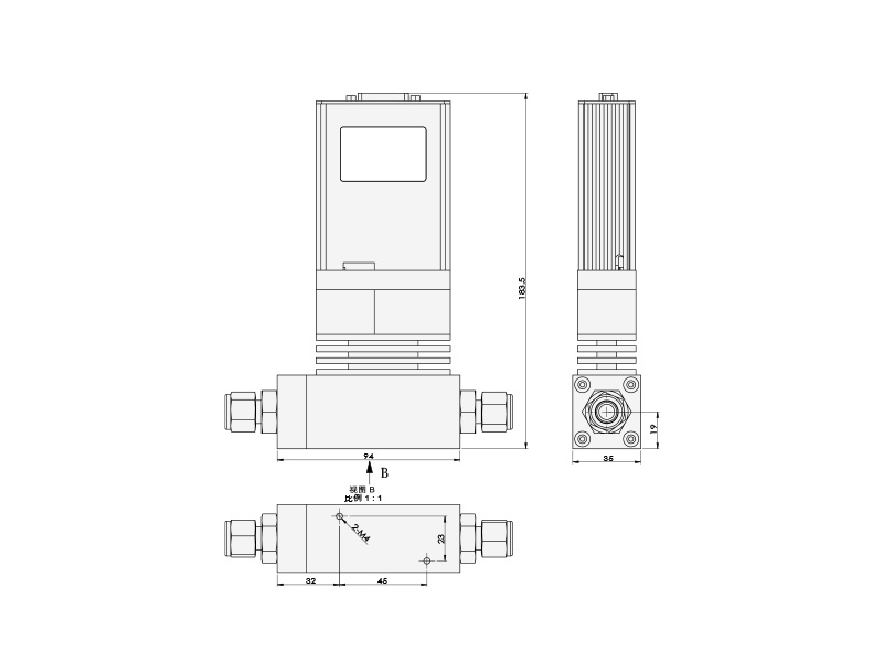 当所测介质和流量不同时,产品外观和尺寸可能会有所不同。如,下图中所示为中量程高温蒸汽流量控制器,请您根据实际工况进行咨询。