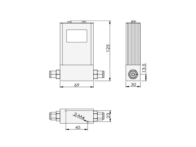 ACU10FD 质量流量控制器采用毛细管传热前后温度差量热法原理测量气体的质量流量,不受温度压力的影响。将传感器测得的流量信号进行放大,然后与设定的电压进行比较,用所得的差值去驱动控制调节阀门,闭环控制流过通道的流量使之与设定的流量相等。
